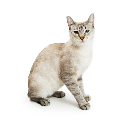 シャム雑種猫の白い背景の上に座って の写真素材 画像素材 Image