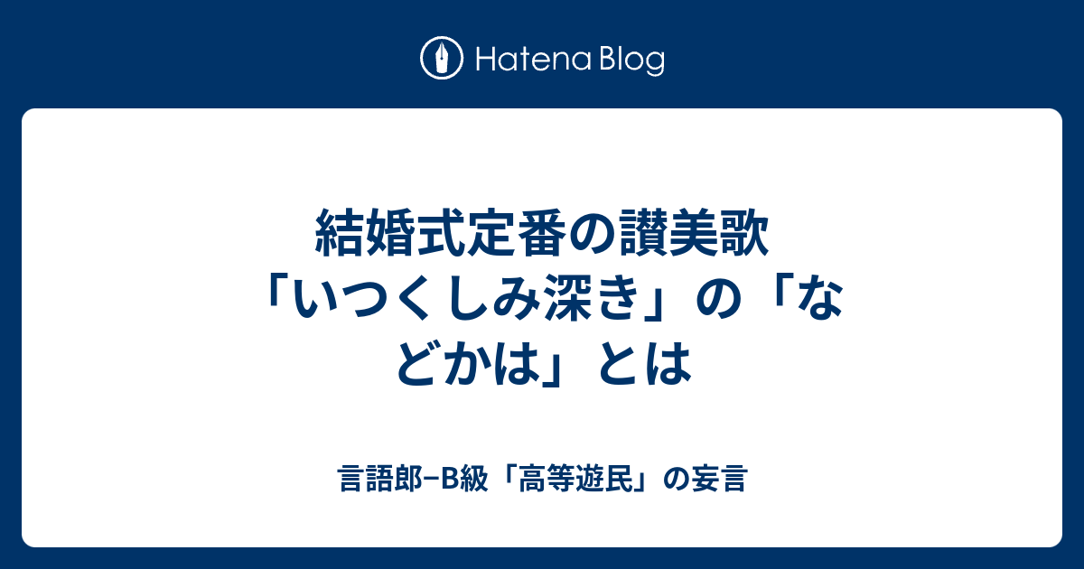 慈しみ深き 友なるイエスは われらの弱きを 知りて憐 (あわれ)む 悩み悲しみに 沈める時も 祈りに応 (こた)えて 慰め給わん 慈しみ深き 友なるイエスは 変わらぬ愛もて 導き給う 世の友われらを 棄 (す)て去る時も 祈りに応えて 労 (いたわ)り給わんキリスト教の讃美歌(聖歌)の「いつくしみ深き」の原曲、What A Friend We Have In Jesus。結婚式、教会の礼拝、ミッションスクールで歌われる聖歌です。